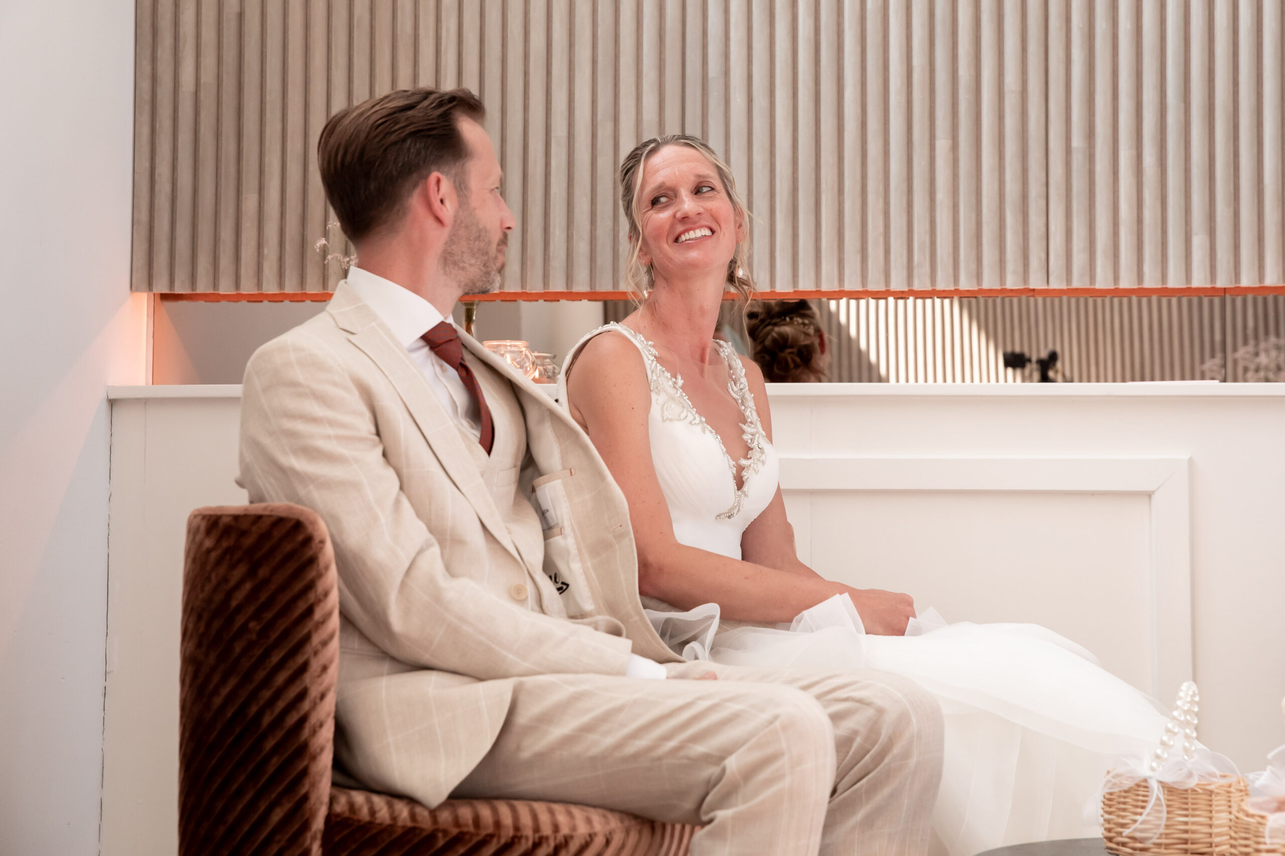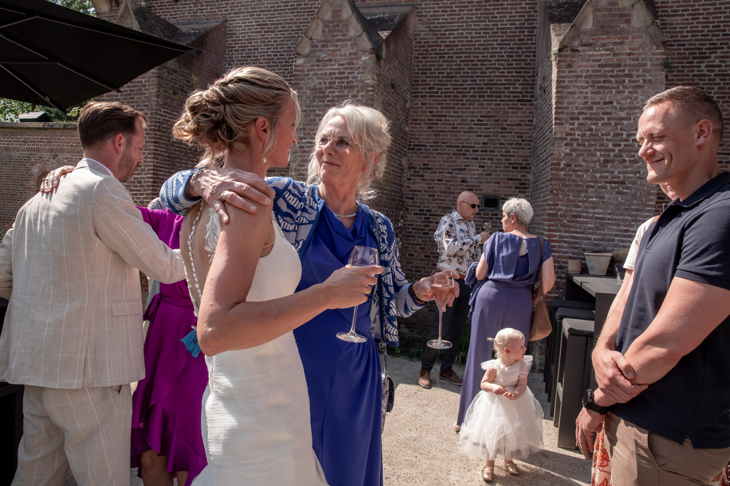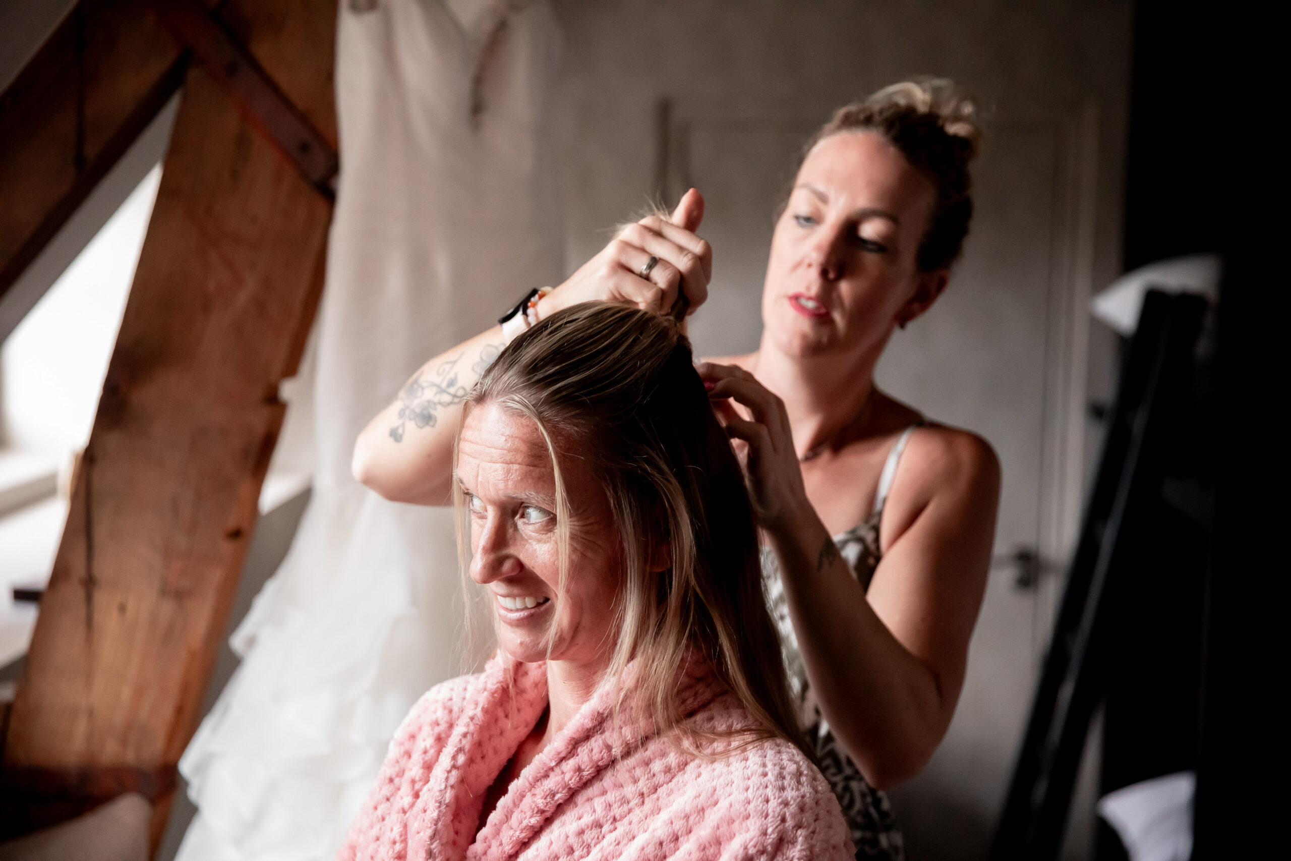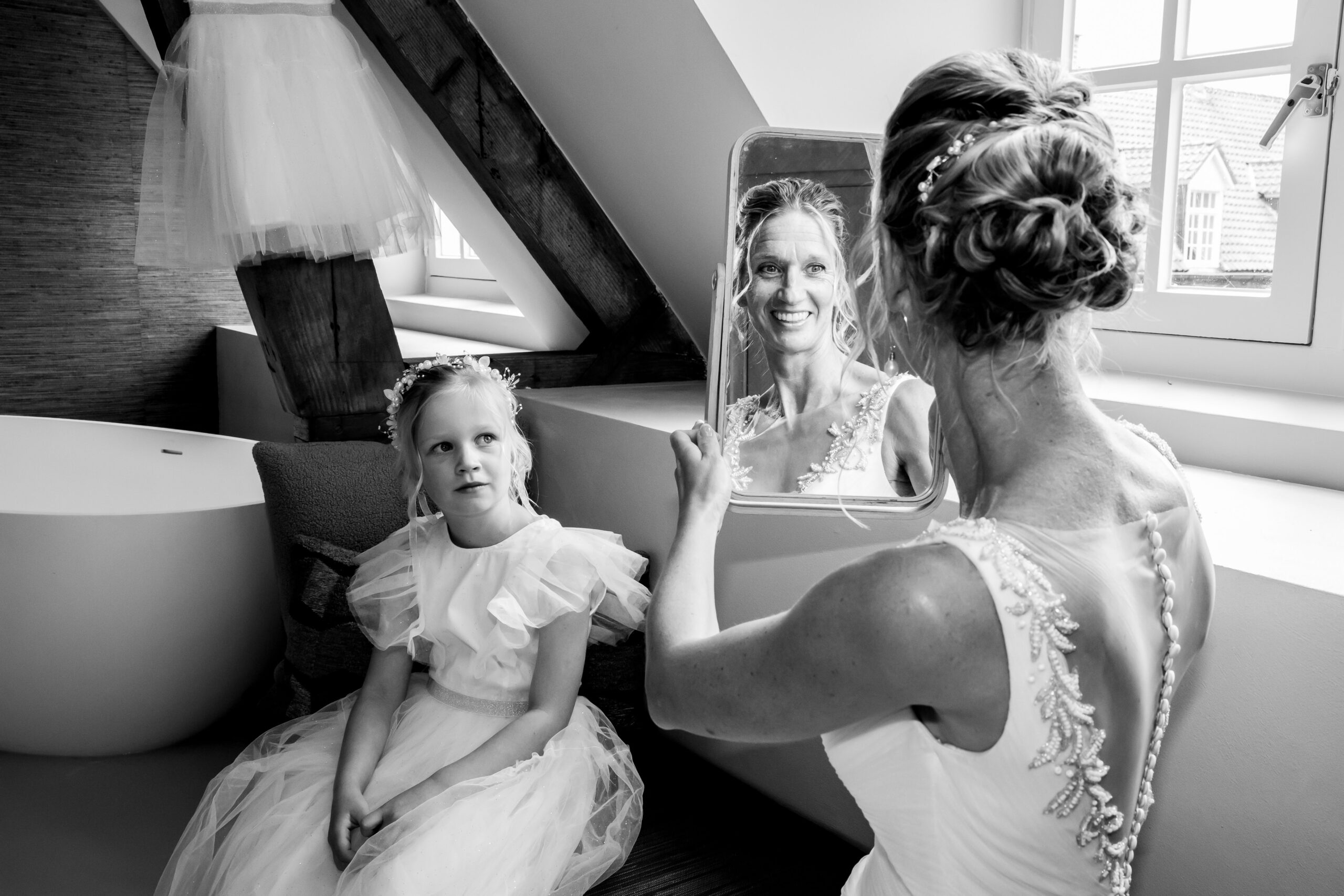 Het was zover, na zolang wachten, de bruiloft van Janneke en Joris. De hele dag vond plaats op de trouwlocatie Ovum in Grave. Van de voorbereidingen, het omkleden tot bruid en bruidegom tot en met het trouwfeest. Deze locatie zit zo dichtbij waar ik woon dat ik bijna op de fiets had gekund, maar met alle apparatuur niet handig. Toen ik bij de trouwlocatie aankwam, waren zowel de bruid en bruidegom heel relaxed. Eerst ging ik bij de bruid de haren en make up fotografeer, daarna het omkleden van Joris met een goede vriend. Toen ging de trouwjurk aan, samen met alle dierbaren om haar heen, inclusief haar moeder en dochter die de eer hadden de jurk te mogen aantrekken bij haar. En wat een plaatje, zo mooi! Daarna gingen wel de trouwreportage bij de trouwlocatie Ovum en in het parkje eromheen doen. Met een lekker broodje relaxed mee voor onderweg die ze heerlijk op een bankje in het park hebben gegeten. Vervolgens was de mooie ceremonie in het kapelletje. En wat hebben we gelachen om hun jongste meisje die heerlijk haar eigen gang ging. De broer trouwde het stel als ambtenaar wat het extra bijzonder en persoonlijk maakte. En wat kon hij dat goed! Na de trouwceremonie een heerlijke borrel in de mooie binnentuin met prachtig weer. Daarna volgde de familie en vriendenfoto’s, een romantisch, bijna Italiaans diner, aan een lange tafel buiten en tot slot het feest! Wat een heerlijke dag, echt genieten. En voor mij extra bijzonder dat ik hun al een paar jaar kende en ze mij hadden gevraagd voor deze dag. Dank voor het vertrouwen Janneke en Joris.