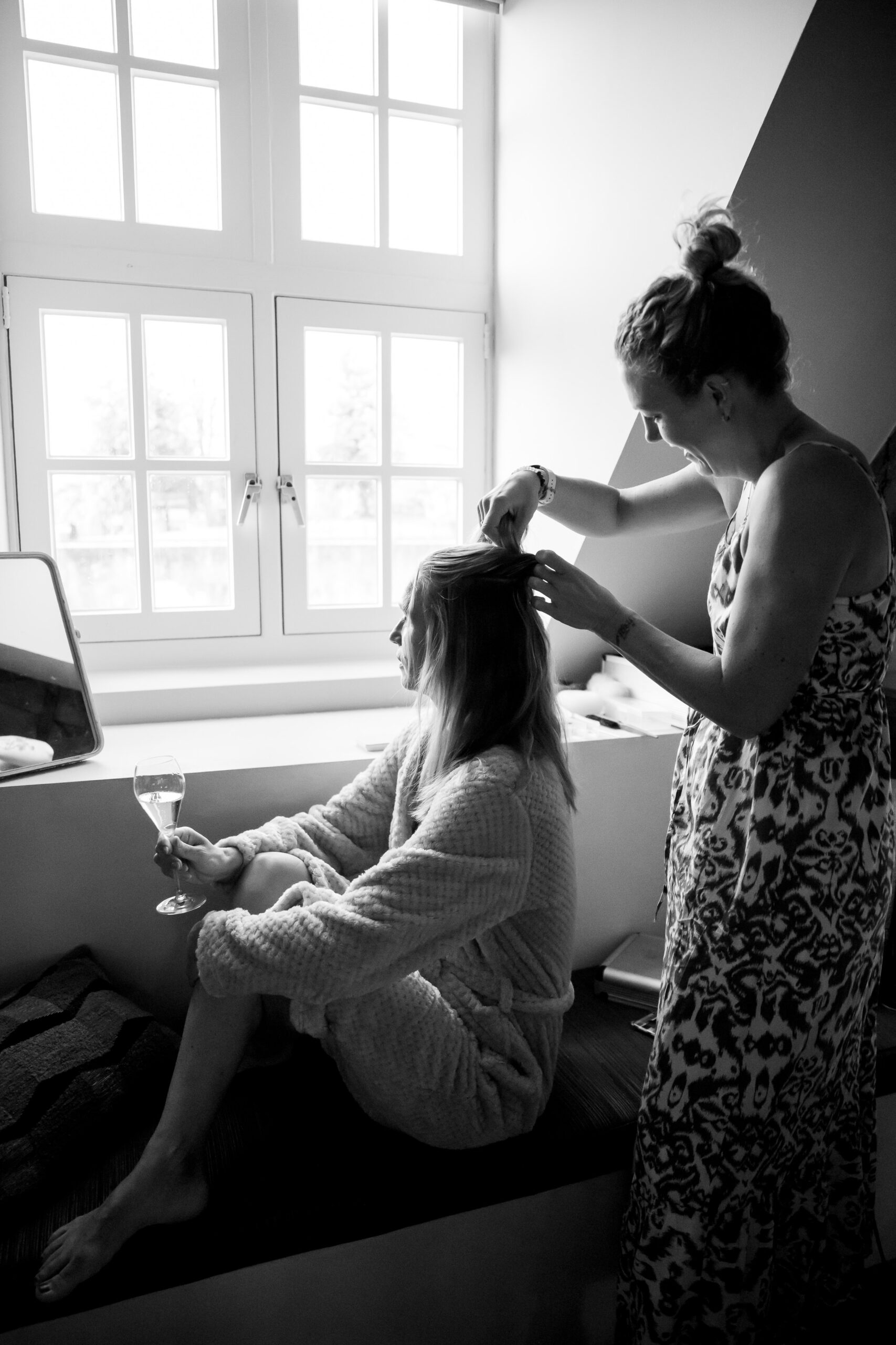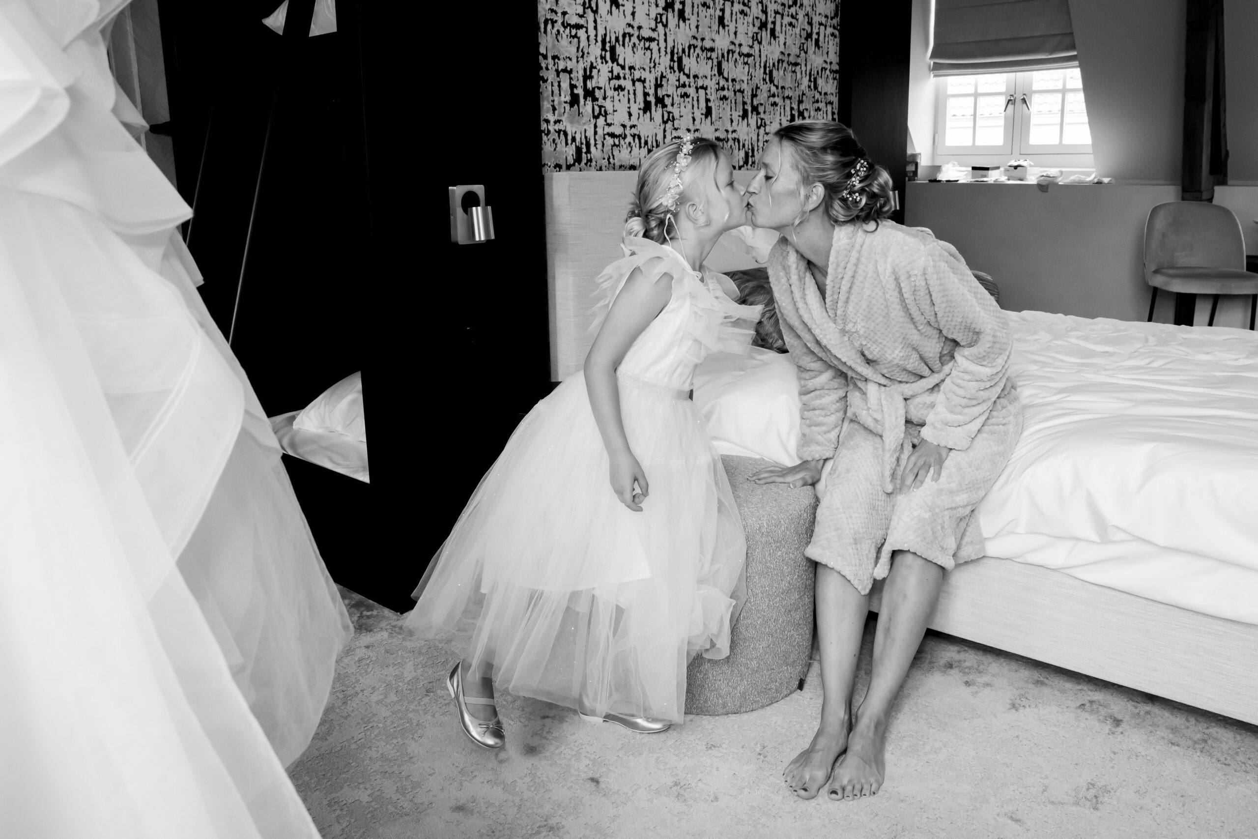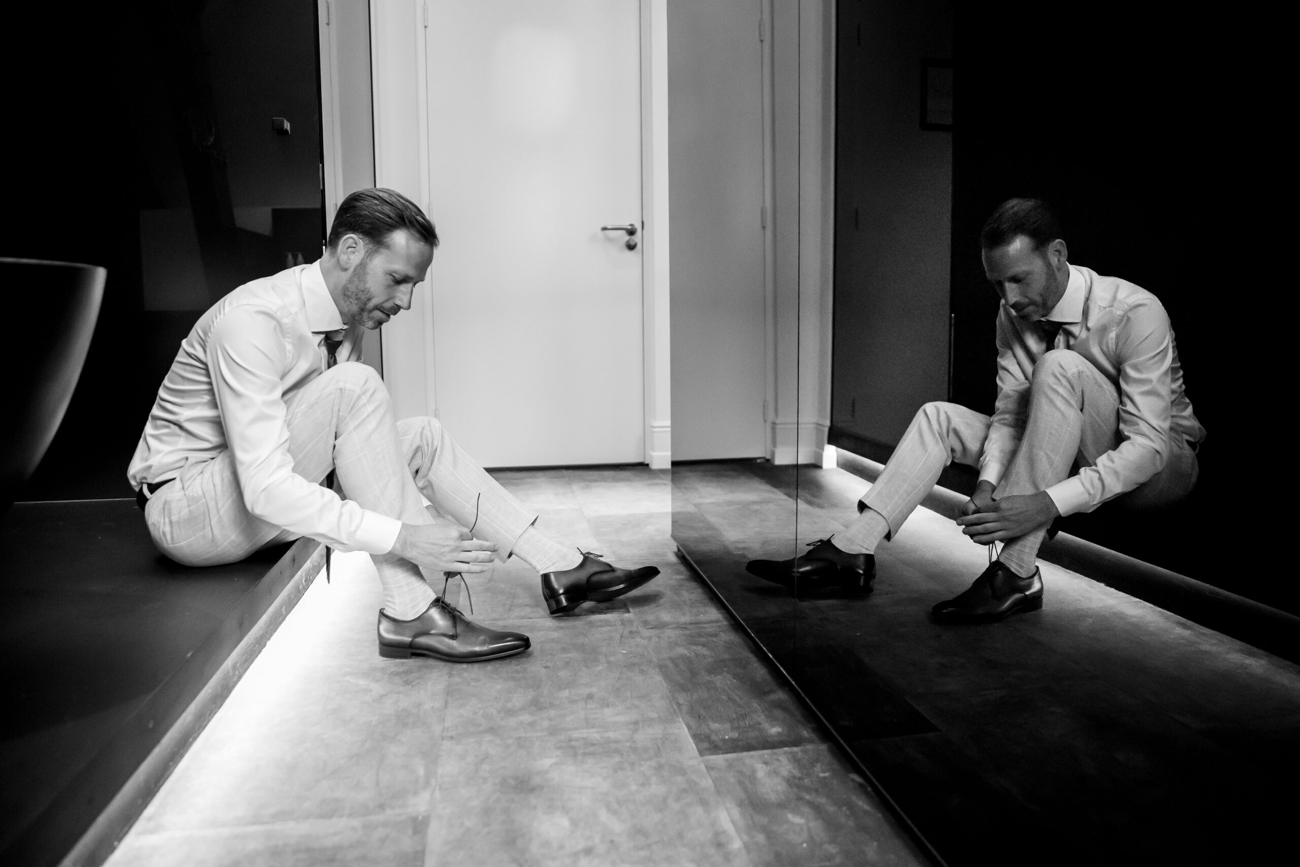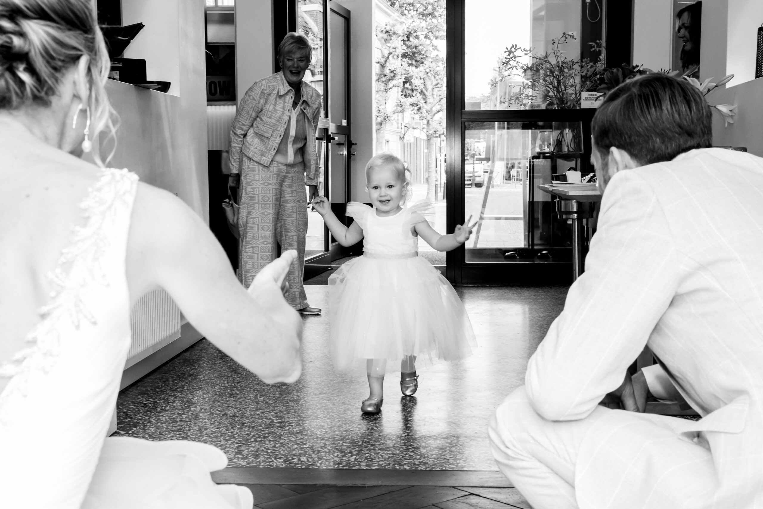 Het was zover, na zolang wachten, de bruiloft van Janneke en Joris. De hele dag vond plaats op de trouwlocatie Ovum in Grave. Van de voorbereidingen, het omkleden tot bruid en bruidegom tot en met het trouwfeest. Deze locatie zit zo dichtbij waar ik woon dat ik bijna op de fiets had gekund, maar met alle apparatuur niet handig. Toen ik bij de trouwlocatie aankwam, waren zowel de bruid en bruidegom heel relaxed. Eerst ging ik bij de bruid de haren en make up fotografeer, daarna het omkleden van Joris met een goede vriend. Toen ging de trouwjurk aan, samen met alle dierbaren om haar heen, inclusief haar moeder en dochter die de eer hadden de jurk te mogen aantrekken bij haar. En wat een plaatje, zo mooi! Daarna gingen wel de trouwreportage bij de trouwlocatie Ovum en in het parkje eromheen doen. Met een lekker broodje relaxed mee voor onderweg die ze heerlijk op een bankje in het park hebben gegeten. Vervolgens was de mooie ceremonie in het kapelletje. En wat hebben we gelachen om hun jongste meisje die heerlijk haar eigen gang ging. De broer trouwde het stel als ambtenaar wat het extra bijzonder en persoonlijk maakte. En wat kon hij dat goed! Na de trouwceremonie een heerlijke borrel in de mooie binnentuin met prachtig weer. Daarna volgde de familie en vriendenfoto’s, een romantisch, bijna Italiaans diner, aan een lange tafel buiten en tot slot het feest! Wat een heerlijke dag, echt genieten. En voor mij extra bijzonder dat ik hun al een paar jaar kende en ze mij hadden gevraagd voor deze dag. Dank voor het vertrouwen Janneke en Joris.