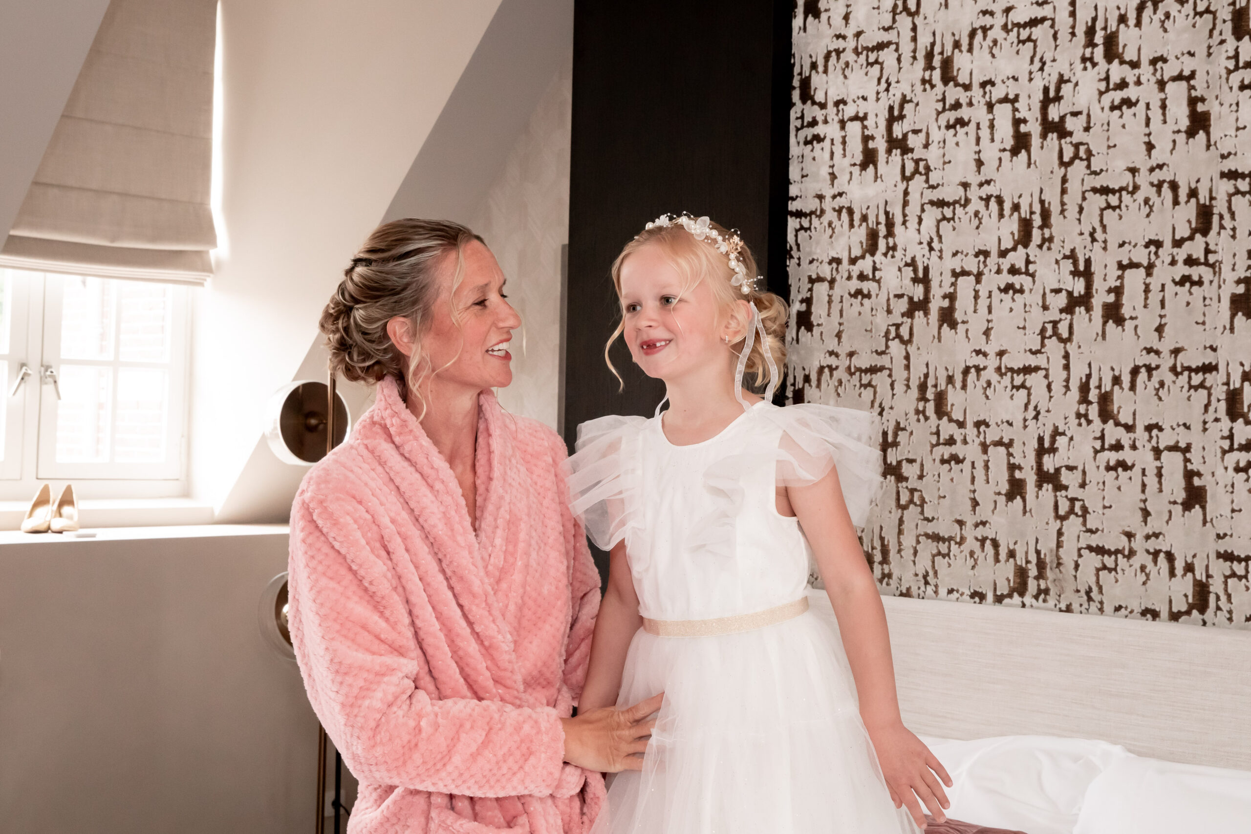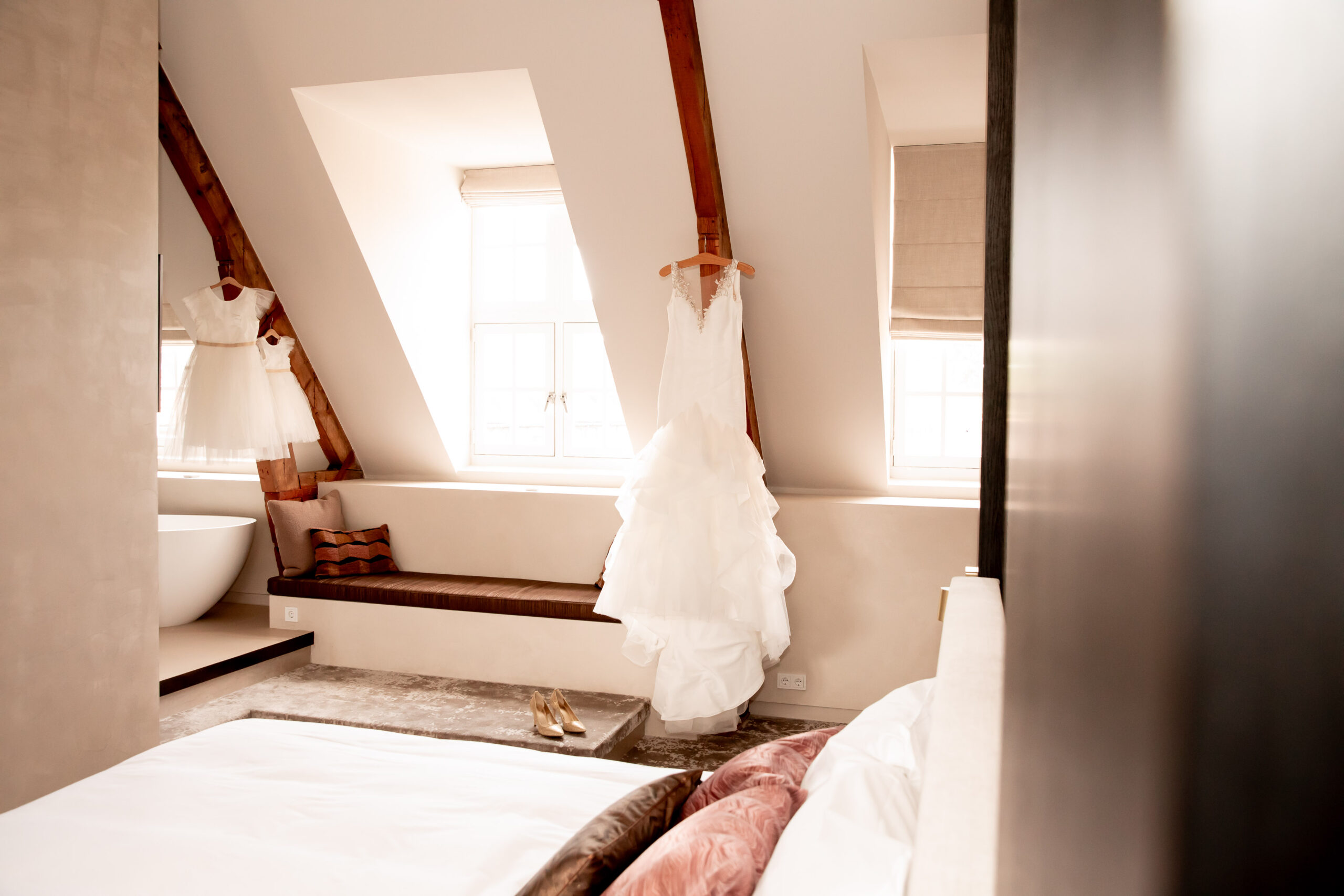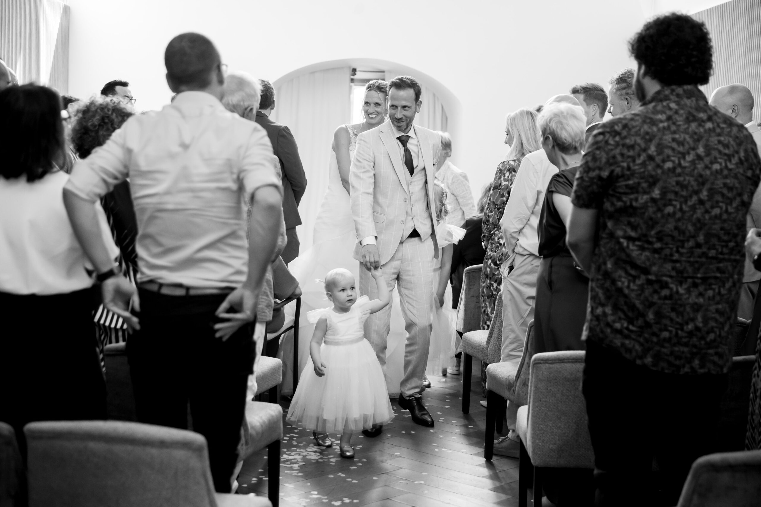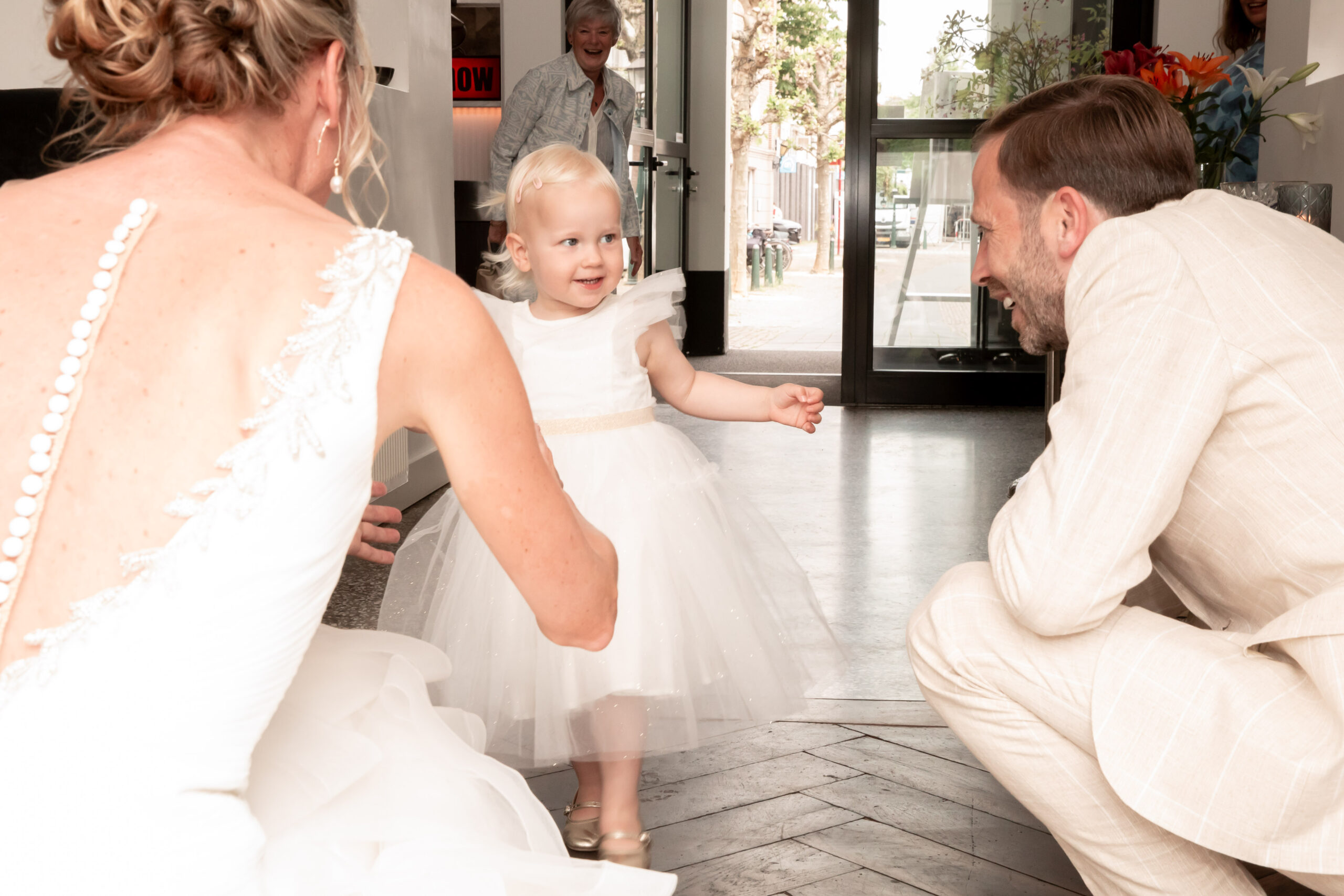 Het was zover, na zolang wachten, de bruiloft van Janneke en Joris. De hele dag vond plaats op de trouwlocatie Ovum in Grave. Van de voorbereidingen, het omkleden tot bruid en bruidegom tot en met het trouwfeest. Deze locatie zit zo dichtbij waar ik woon dat ik bijna op de fiets had gekund, maar met alle apparatuur niet handig. Toen ik bij de trouwlocatie aankwam, waren zowel de bruid en bruidegom heel relaxed. Eerst ging ik bij de bruid de haren en make up fotografeer, daarna het omkleden van Joris met een goede vriend. Toen ging de trouwjurk aan, samen met alle dierbaren om haar heen, inclusief haar moeder en dochter die de eer hadden de jurk te mogen aantrekken bij haar. En wat een plaatje, zo mooi! Daarna gingen wel de trouwreportage bij de trouwlocatie Ovum en in het parkje eromheen doen. Met een lekker broodje relaxed mee voor onderweg die ze heerlijk op een bankje in het park hebben gegeten. Vervolgens was de mooie ceremonie in het kapelletje. En wat hebben we gelachen om hun jongste meisje die heerlijk haar eigen gang ging. De broer trouwde het stel als ambtenaar wat het extra bijzonder en persoonlijk maakte. En wat kon hij dat goed! Na de trouwceremonie een heerlijke borrel in de mooie binnentuin met prachtig weer. Daarna volgde de familie en vriendenfoto’s, een romantisch, bijna Italiaans diner, aan een lange tafel buiten en tot slot het feest! Wat een heerlijke dag, echt genieten. En voor mij extra bijzonder dat ik hun al een paar jaar kende en ze mij hadden gevraagd voor deze dag. Dank voor het vertrouwen Janneke en Joris.